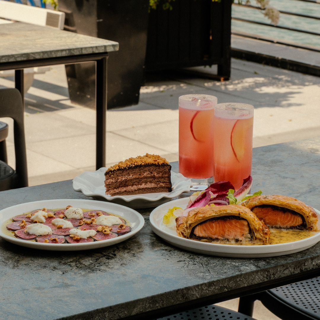 Get together with people you love this Mother’s Day over a menu made for celebrating her. Begin with delicate Fig Carpaccio, followed by a perfectly cooked Salmon Wellington and an indulgent Chocolatina Cake. Pair the meal with the non-alcoholic Peach Blossom Fizz cocktail featuring peach, citrus, and basil.
